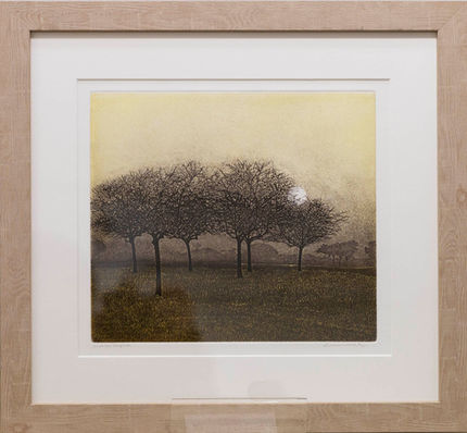 A landscape artist Phil works mainly on copper plates. His work is extremely economical in that he usually uses only two plates and two or three colours to achieve a great range of tone and colour by the depth of the etch and by overprinting and fusing one colour with another. His images do not always relate to a specific place – he develops and works with an amalgamation of ideas recalled. The atmosphere exemplified by the landscape is the important factor.